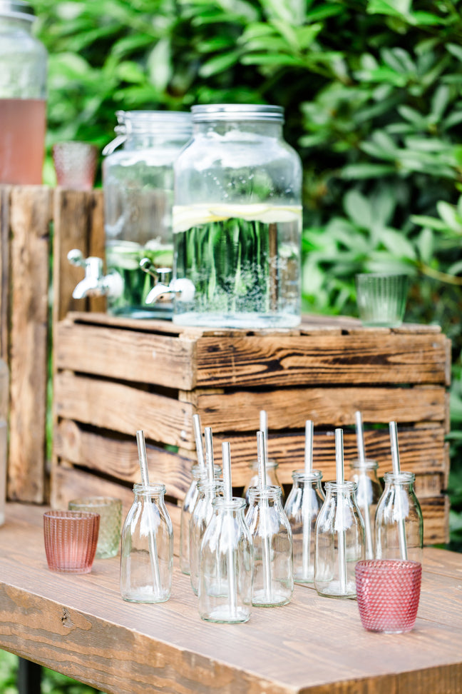 Richtet eine kleine Station ein, an der sich die Gäste ihren personalisierten Trinkhalm selbst aussuchen können. Dies kann neben der Bar oder dem Buffet platziert werden und bietet eine schöne Interaktionsmöglichkeit.