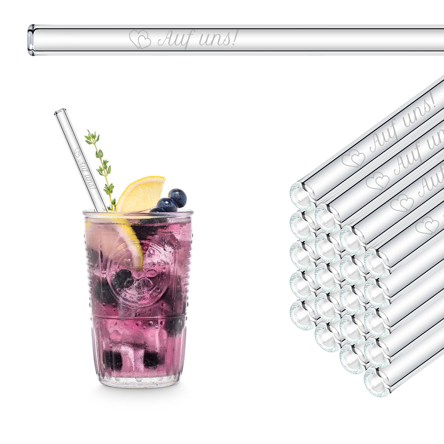 Nos élégantes pailles en verre sont fabriquées en Allemagne à partir de verre de qualité 100 % recyclable et allient durabilité et charme berlinois. Votre boisson reçoit une touche personnelle et élégante - et le tout à la vitesse de l'éclair avec une livraison standard en 2 jours ouvrés ou une livraison express en 24 heures !