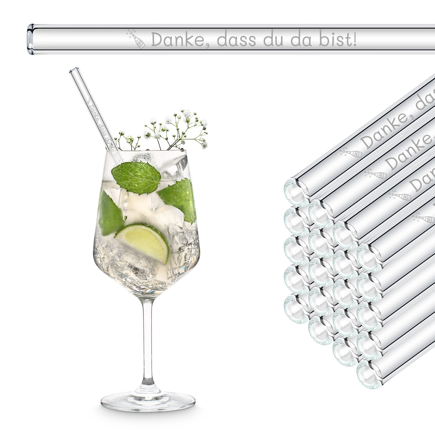 Danke, dass du da bist! Gravierte Glasstrohhalme - Gastgeschenk für Hochzeitsgäste